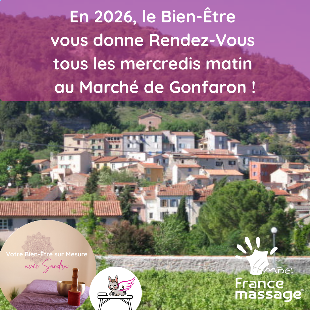 Sandra – janvier 2026 Gonfaron.Net Publié le 22 janvier 2026 par Gonfaron.Net22 janvier 2026 En cette nouvelle année 2026, Sandra propose ce mois ci une promotion sur une séance de « Massage Bien-Etre Suedois » Sandra vous donne rendez vous tous les mercredis matin au marché de Gonfaron.